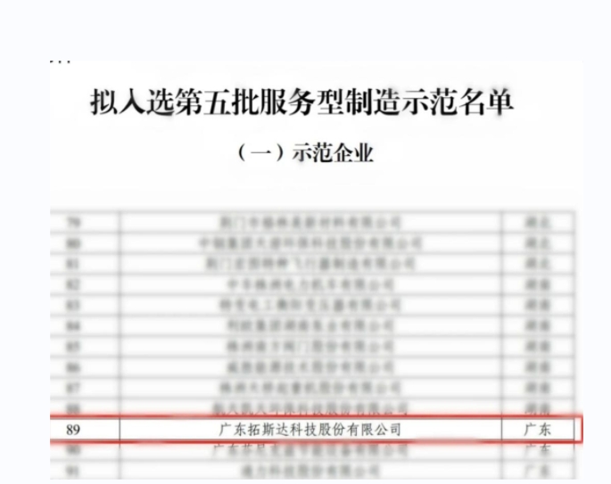 日前,工業(yè)和信息化部公示了第五批服務(wù)型制造示范名單,拓斯達入選工信部第五批服務(wù)型制造示范企業(yè),感謝業(yè)界對拓斯達的技術(shù)研發(fā)能力和品質(zhì)服務(wù)的信任和肯定。