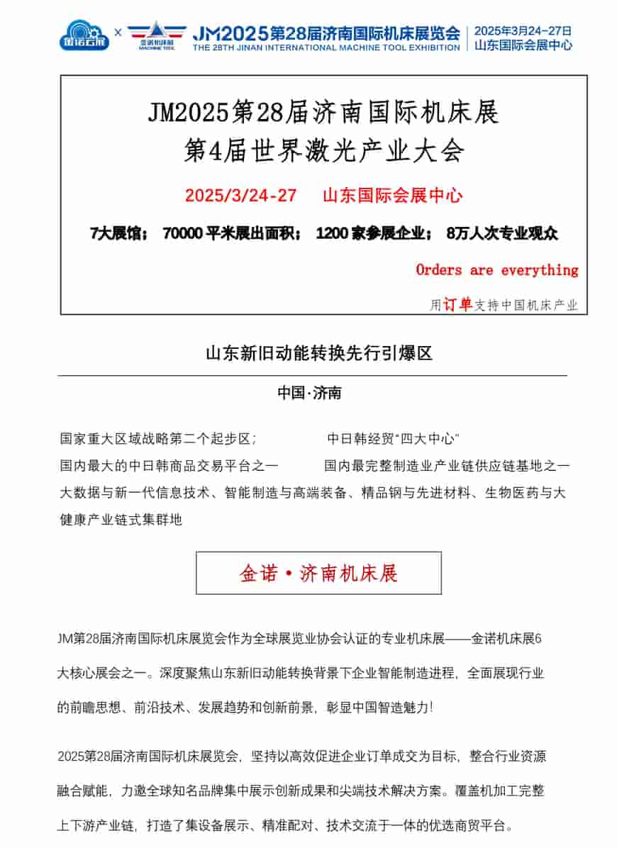 JM2025第28屆濟南國際機床展 第4屆世界激光產業大會